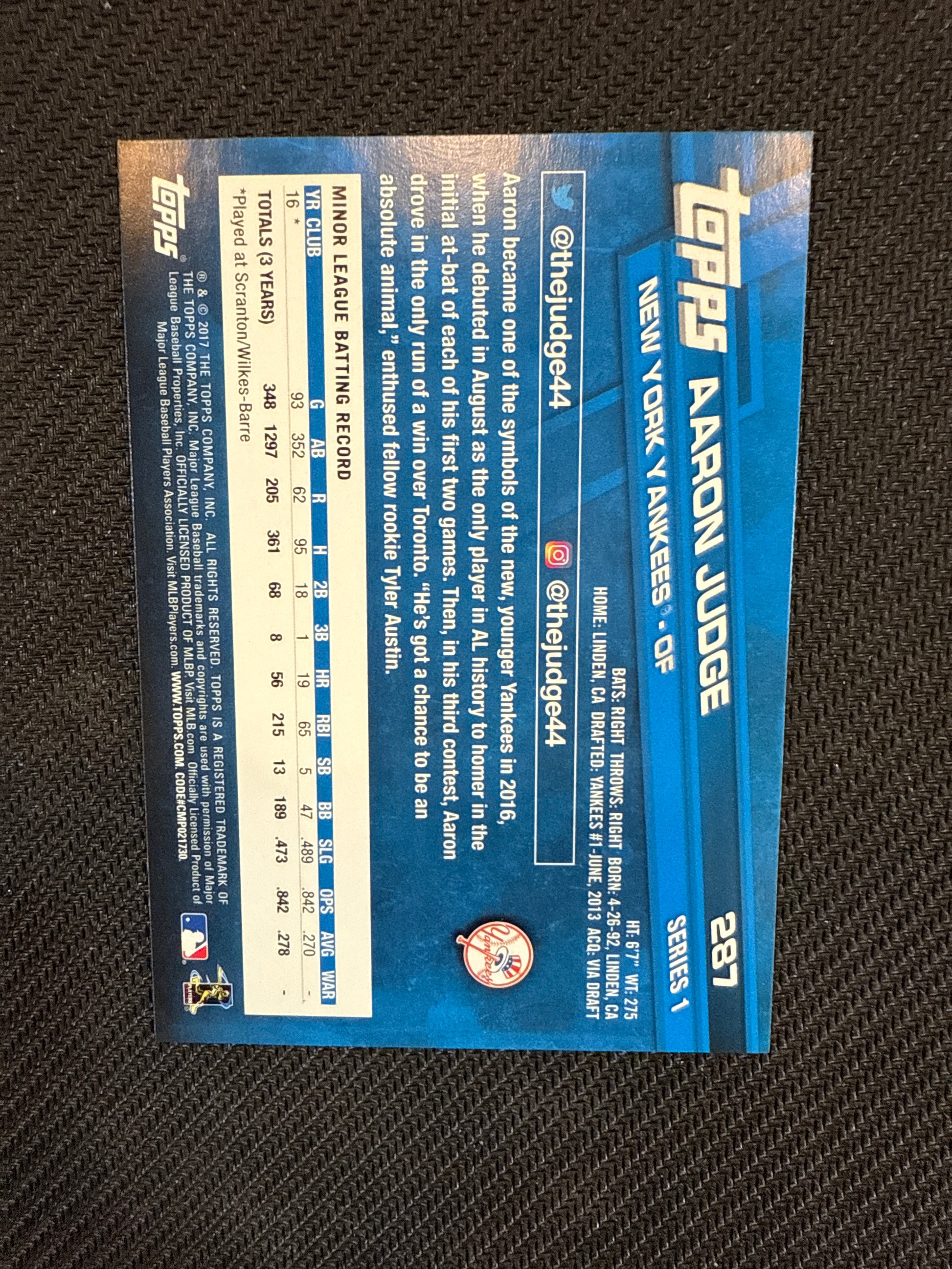 #287a Aaron Judge 2017 Topps RC Rookie New York Yankees sports