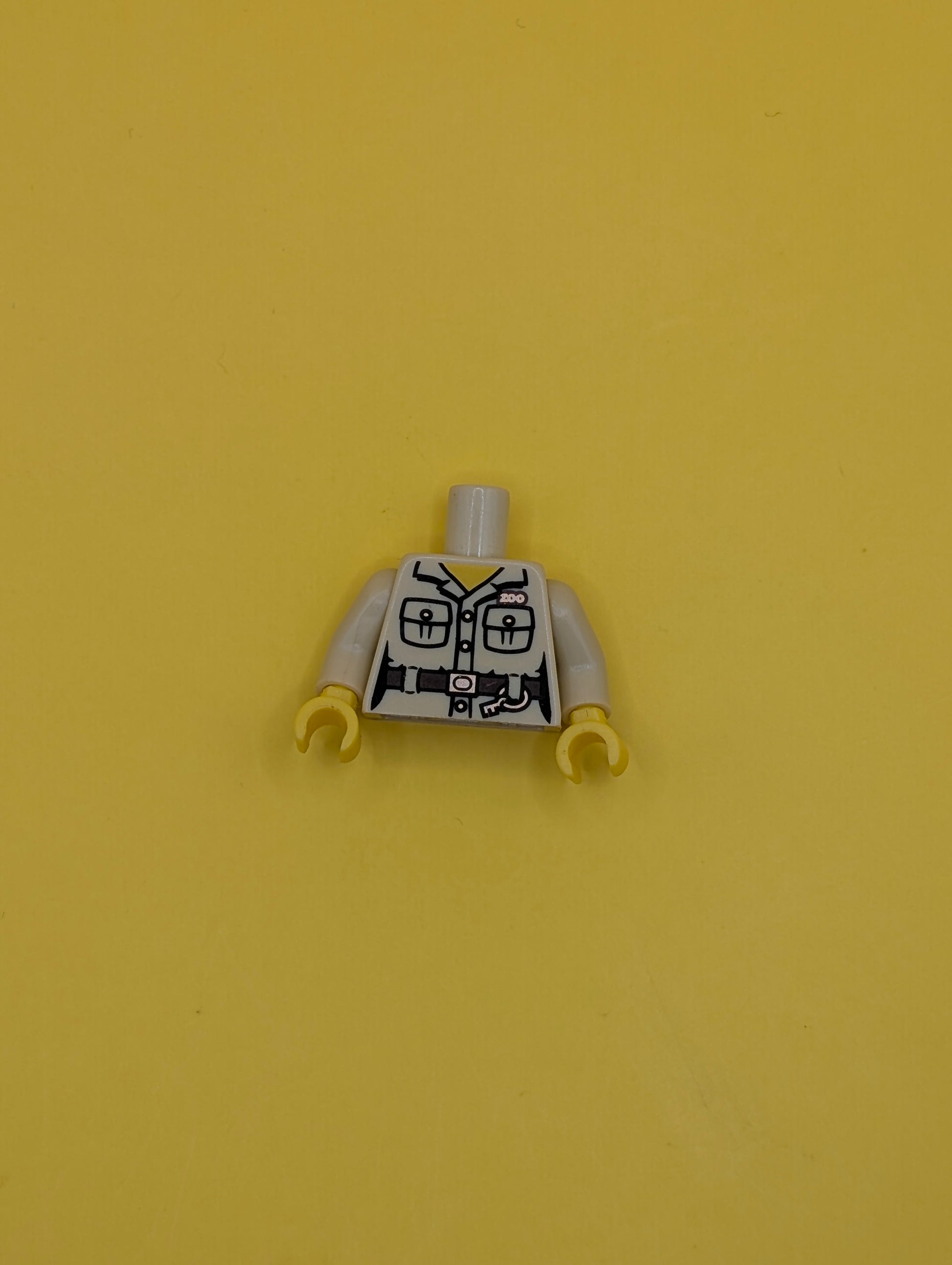 973pb0935c01 Torso Safari Shirt with Pockets, Belt, Key Ring and 'ZOO' Pattern / Tan Arms / Yellow Hands Lego Part