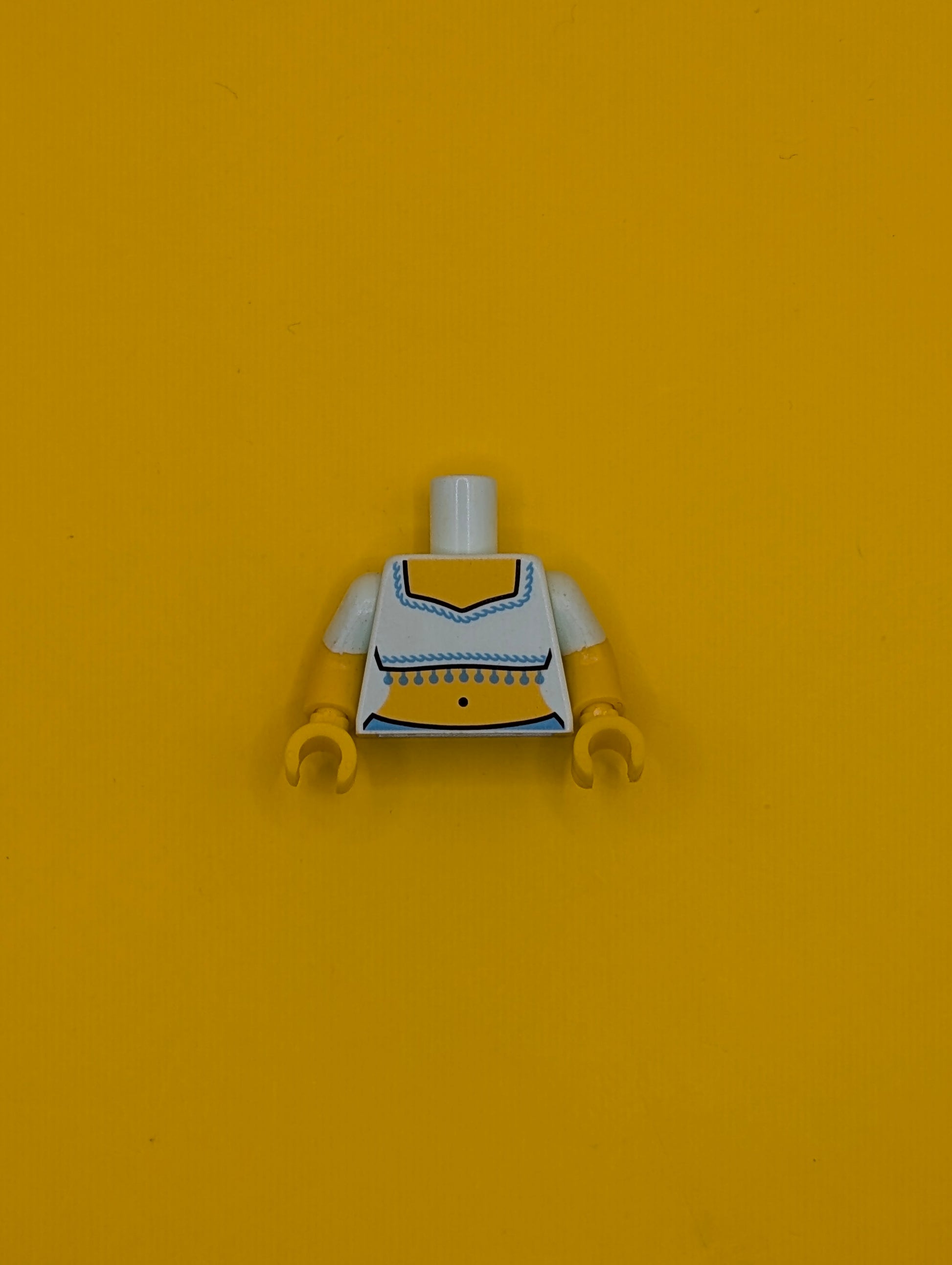 973pb1770c01 Torso Fringed Crop Top Pattern (Genie) / Yellow Arms with Molded Light Aqua Short Sleeves Pattern / Yellow Hands Lego Part