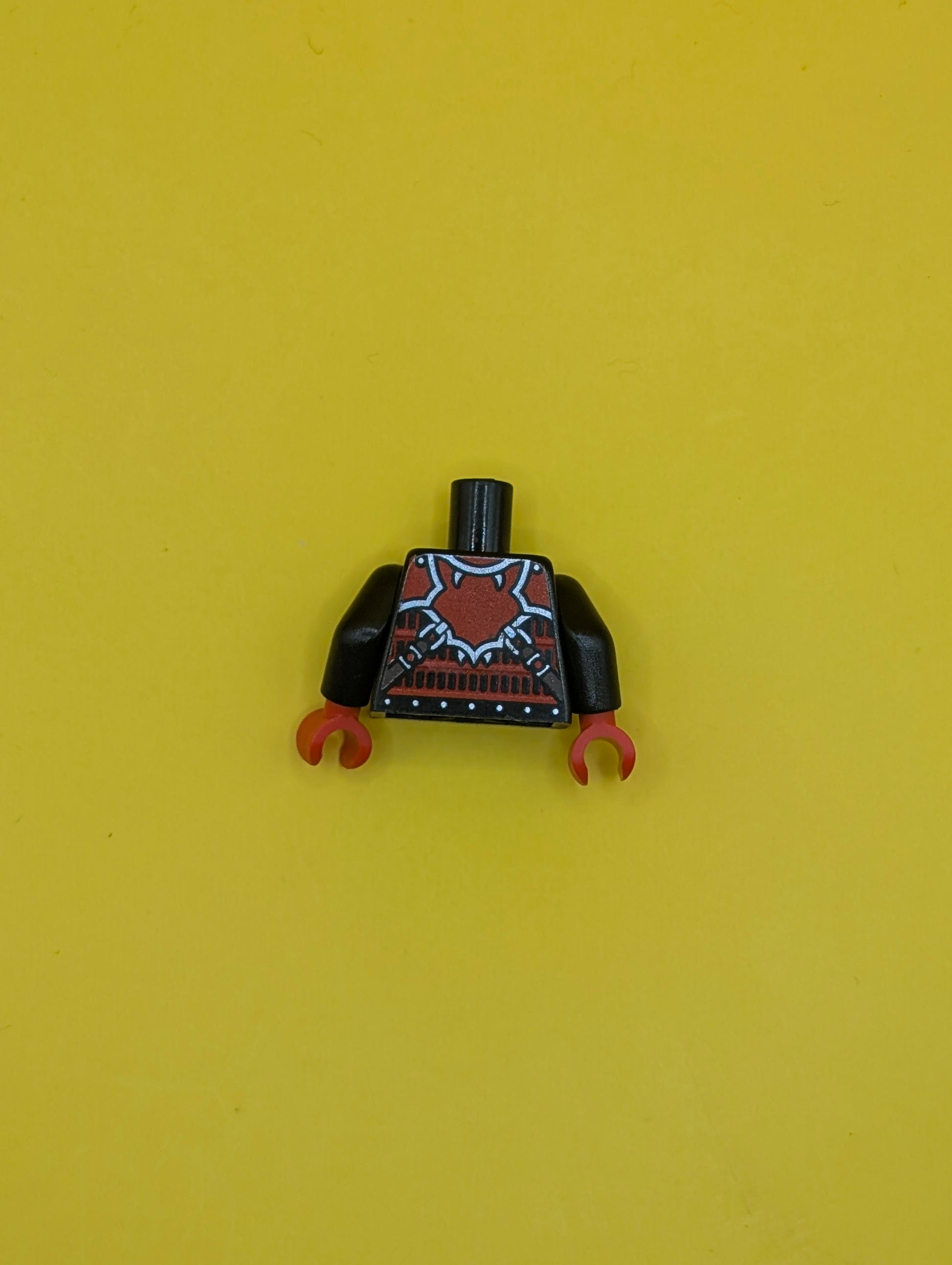 973pb2498c01 Torso Ninjago Red Armor with Lime Swirl Medallion Front, Belts on Back Pattern / Black Arms / Red Hands Lego Part