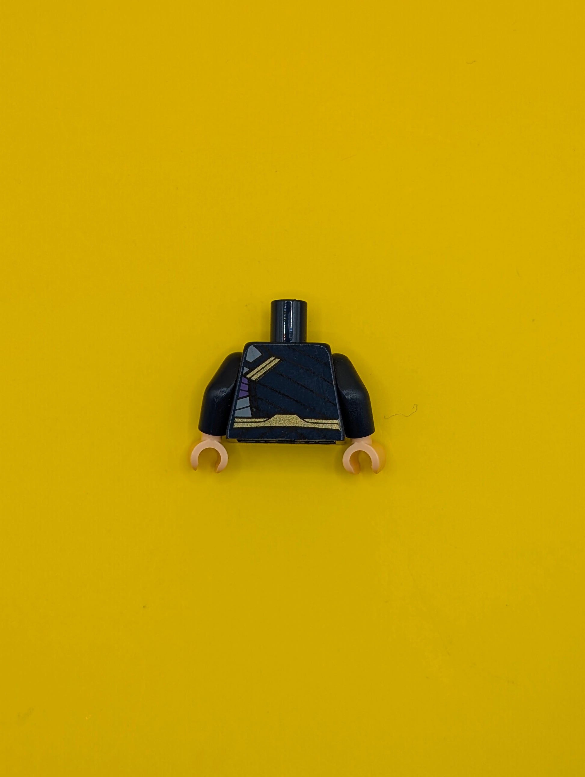 973pb2970c01 Torso Tunic with Gold Shoulder Clasp and Belt, Dark Purple and Bright Light Blue Trim Pattern / Dark Blue Arms / Light Nougat Hands Lego Part