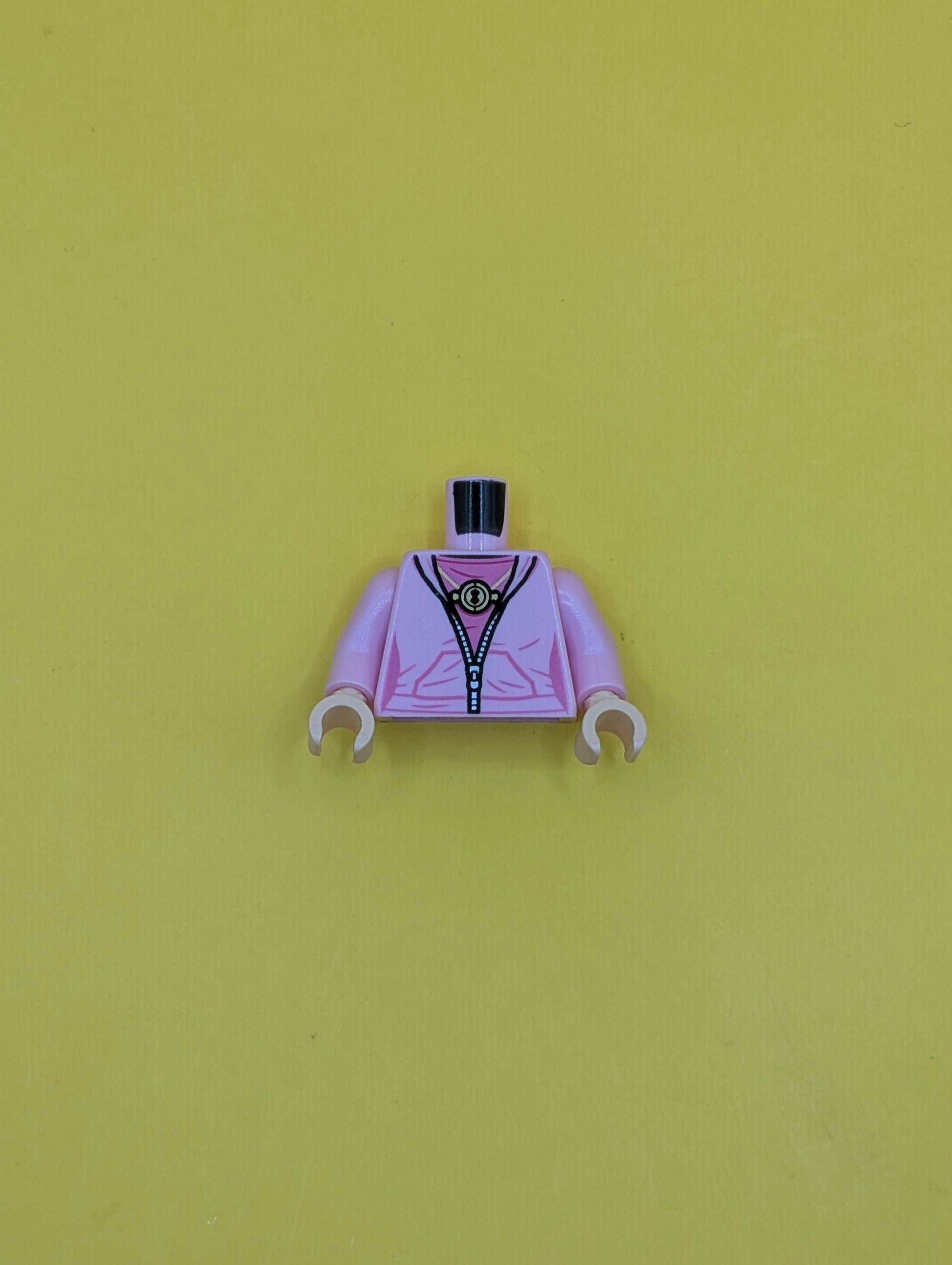 973pb3592c01 Torso Female Jacket, Dark Pink Shirt, Gold Time Turner and Silver Zipper Pattern / Bright Pink Arms / Light Nougat Hands Lego Part