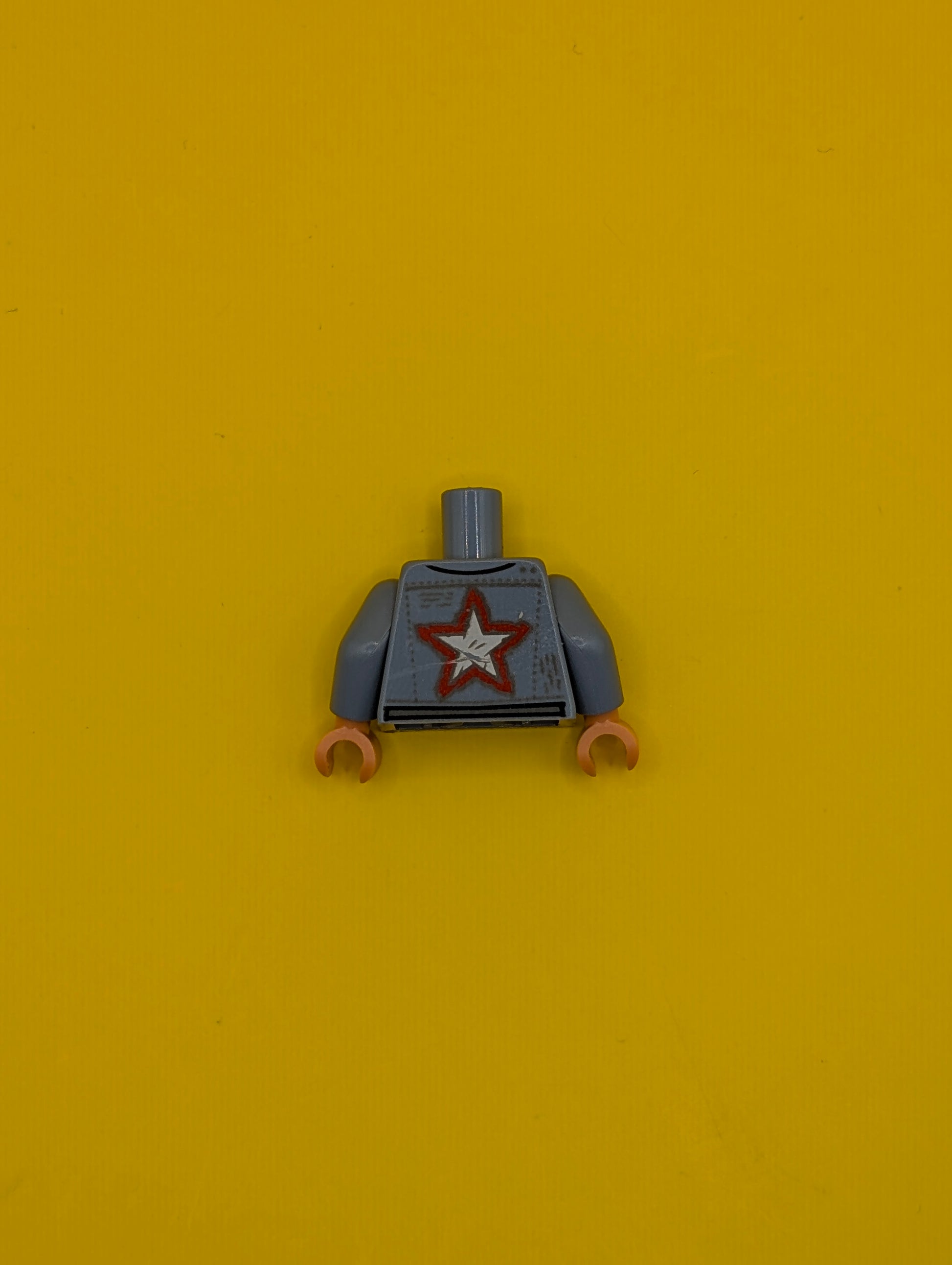 973pb4655c01 Torso Jacket with Pockets, Red Trim and Star over Light Bluish Gray Shirt, Belt with Silver Buckles Pattern / Sand Blue Arms / Nougat Hands Lego Part