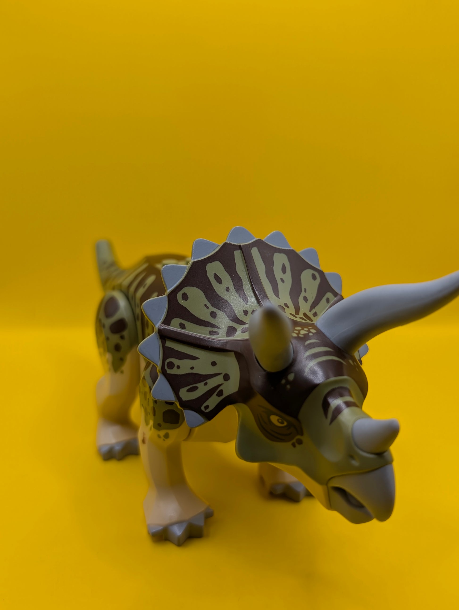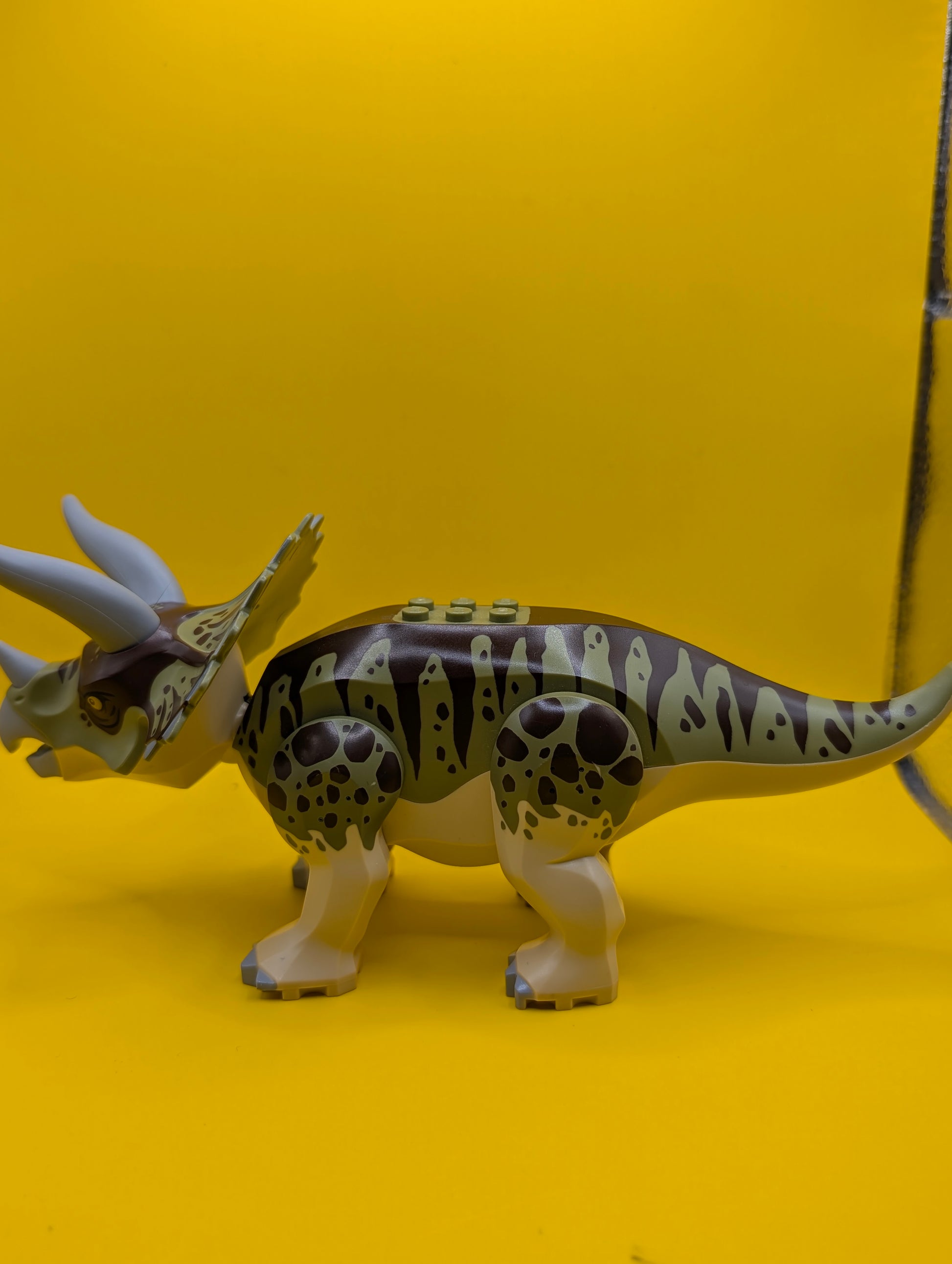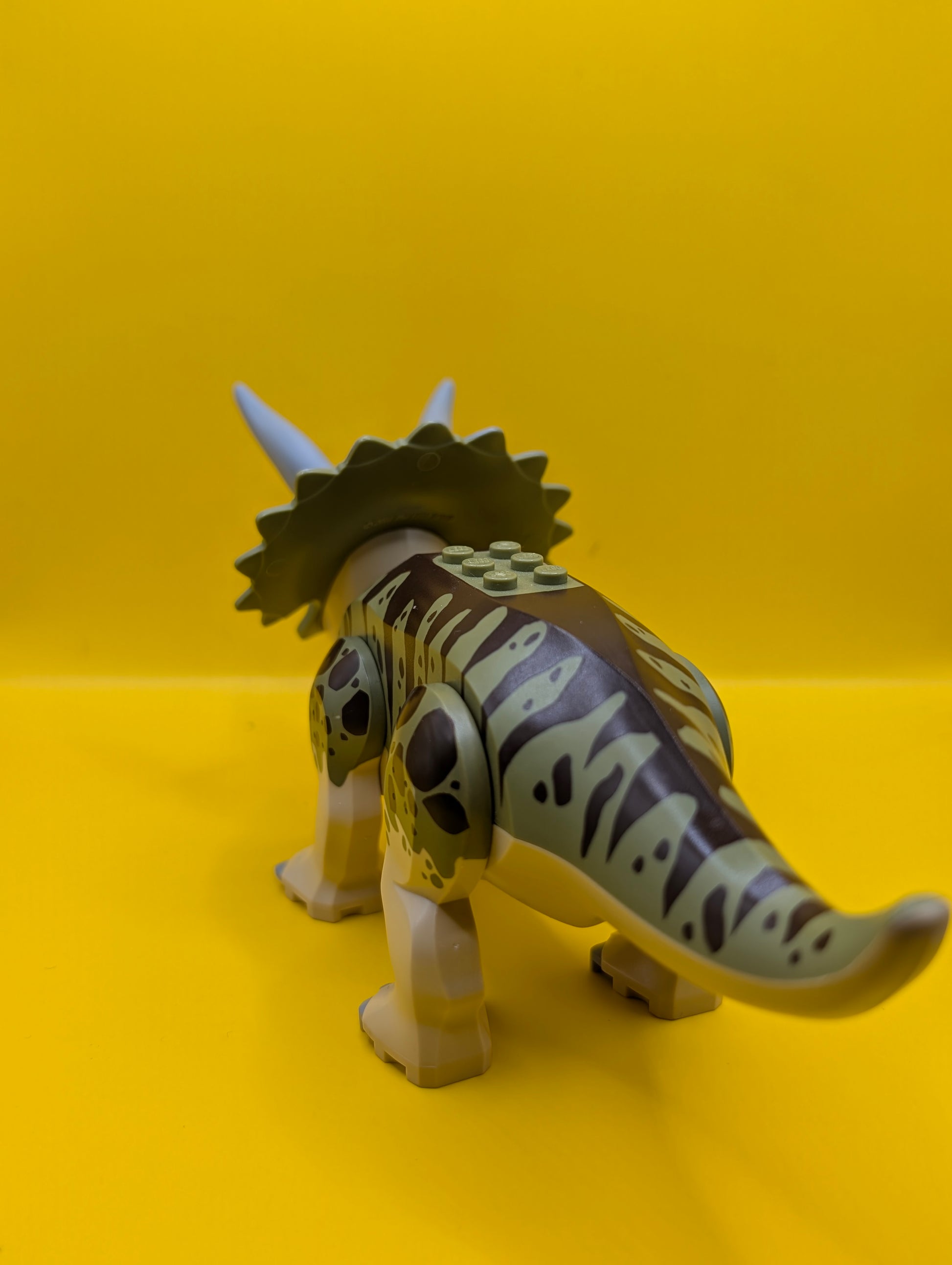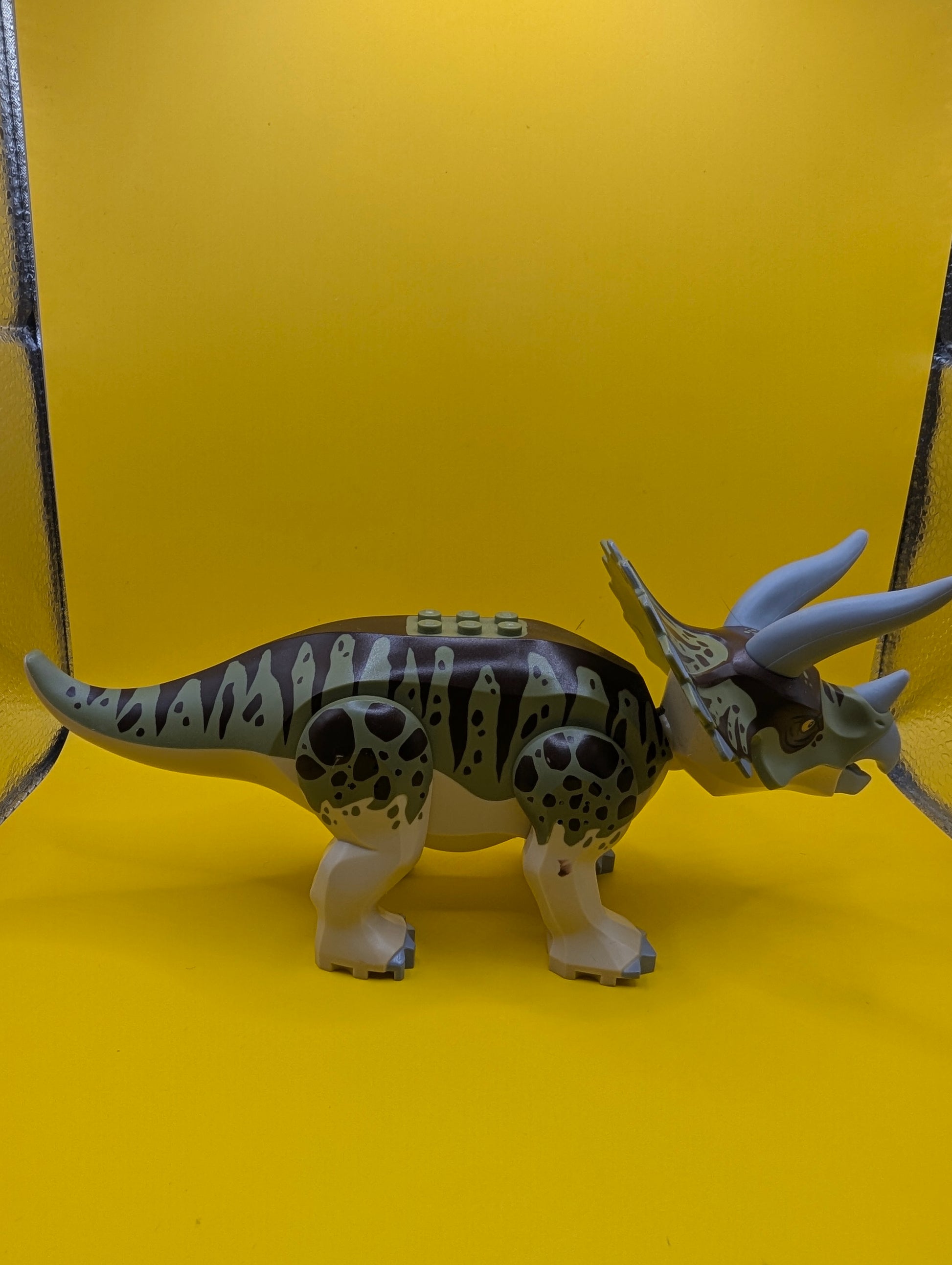 Dinosaur Triceratops tricera04 with Olive Green and Dark Brown Stripes on Back Jurassic World Lego Minifigure
