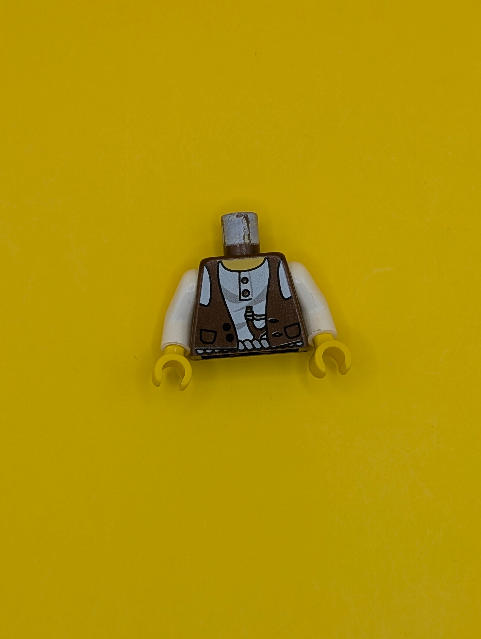 Torso Adventurers Desert Vest over White Shirt, Slingshot Pattern / White Arms / Yellow Hands 973px190c01 Lego