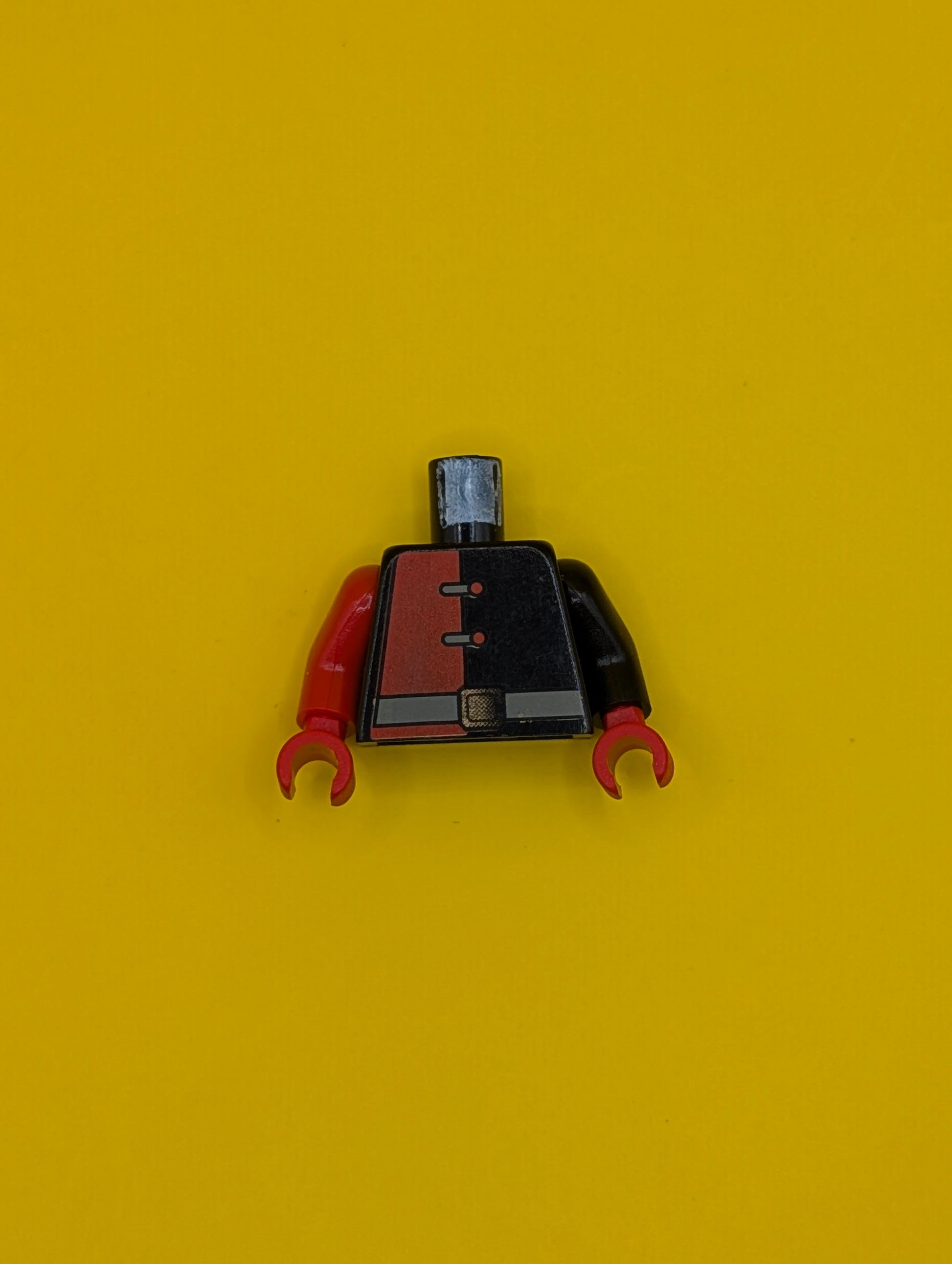 Torso Alpha Team Shirt with Red Panel and Buttons, Dark Gray Belt with Gold Buckle Pattern / Black Arm Left / Red Arm Right / Red Hands 973pb0107c01 Lego