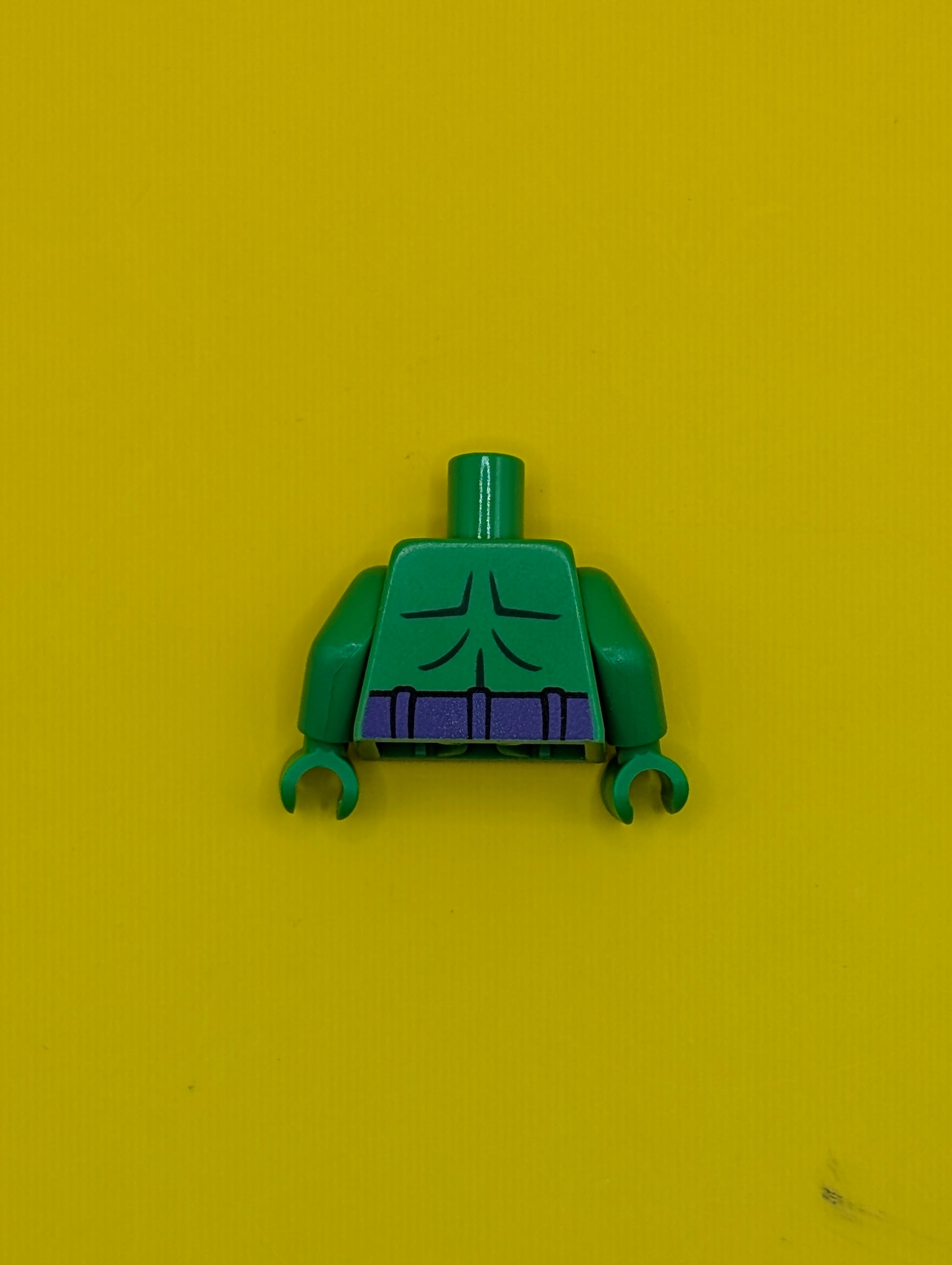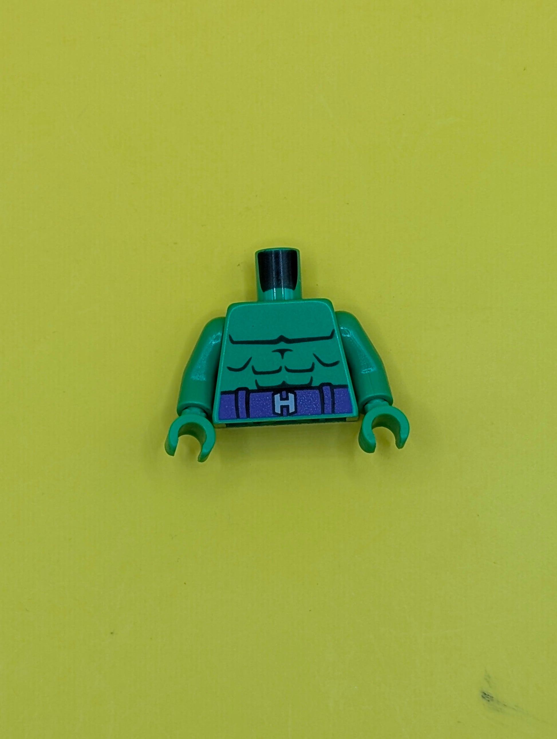 Torso Bare Chest with Dark Green Muscles Outline, Dark Purple Belt with Silver Capital Letter H Buckle Pattern / Bright Green Arms / Bright Green Hands 973pb2291c01 Lego