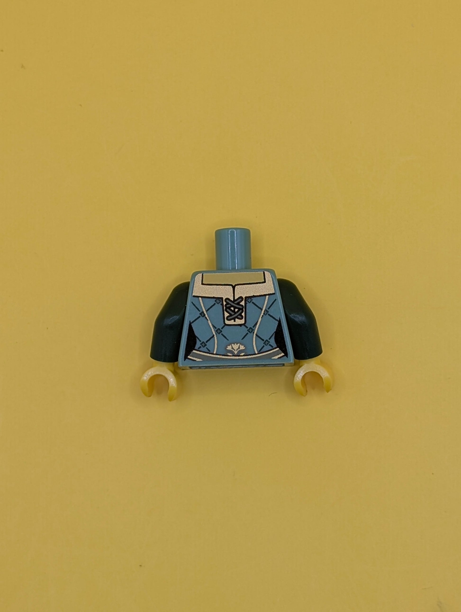 Torso Castle Kingdoms Female Corset with Gold Trimmed Front and Rectangular Neckline Pattern / Dark Green Arms / Yellow Hands 973pb1032c01 Lego