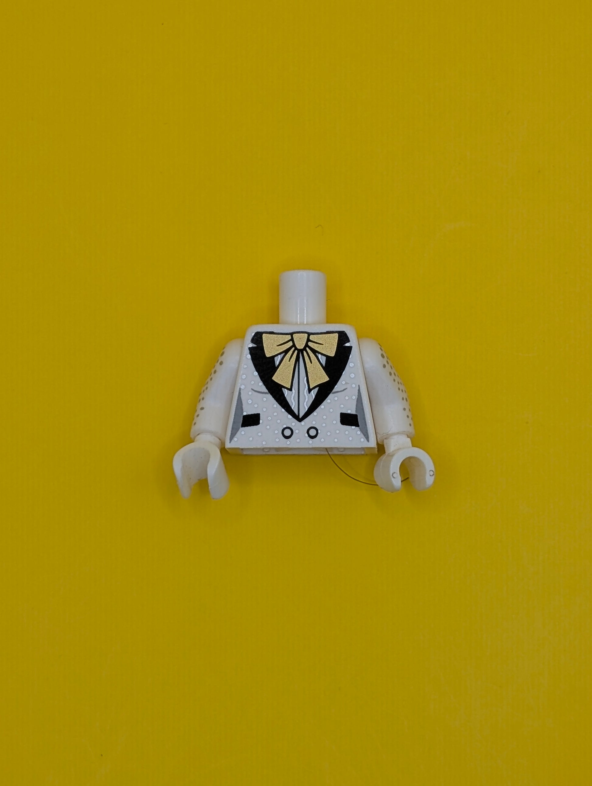 Torso Female Tuxedo Jacket, Large Gold Bow, Black Lapels and Pockets, Silver Speckles Pattern / White Arms with Silver Speckles Pattern / White Hands 973pb2937c01 Lego