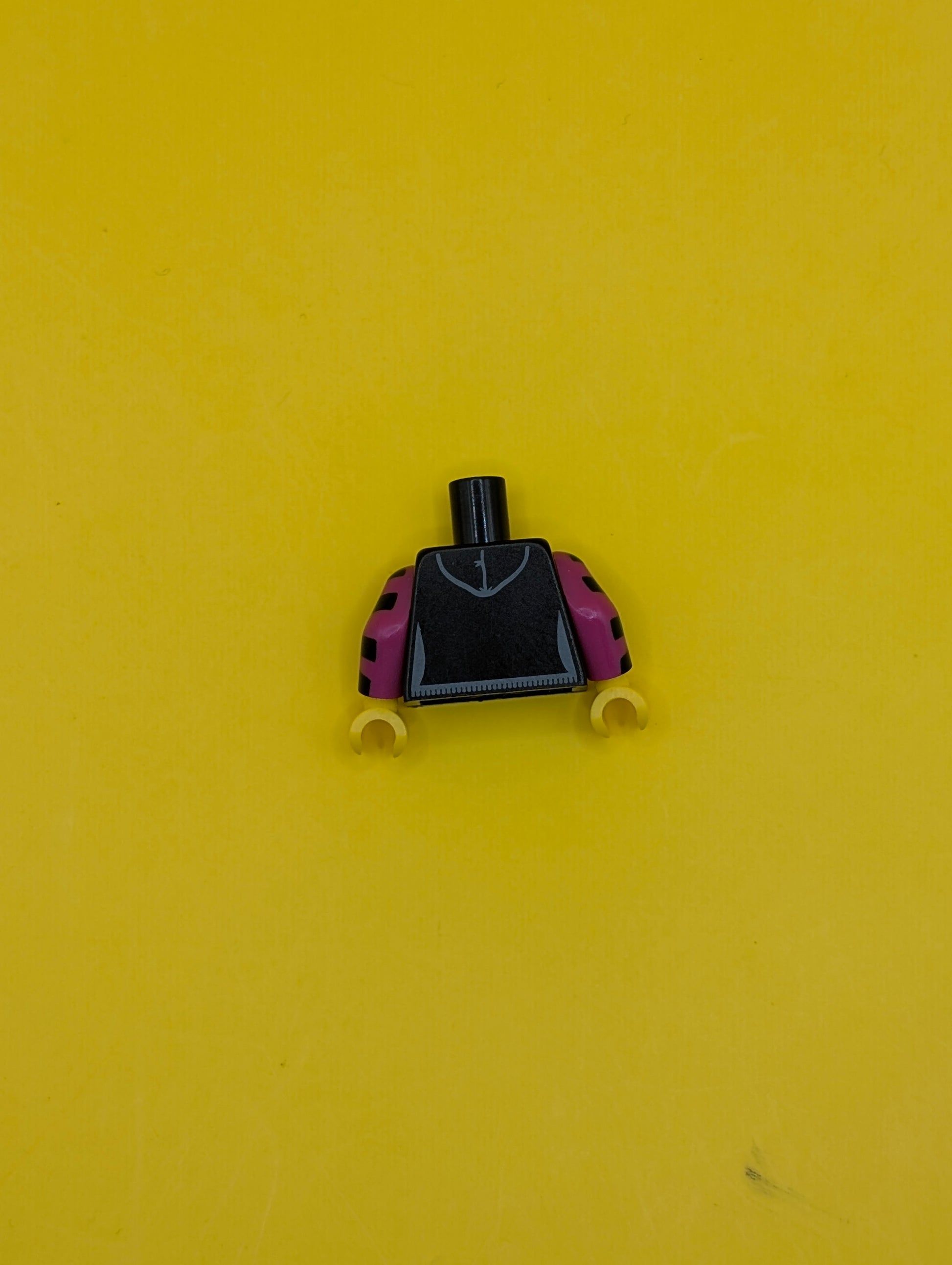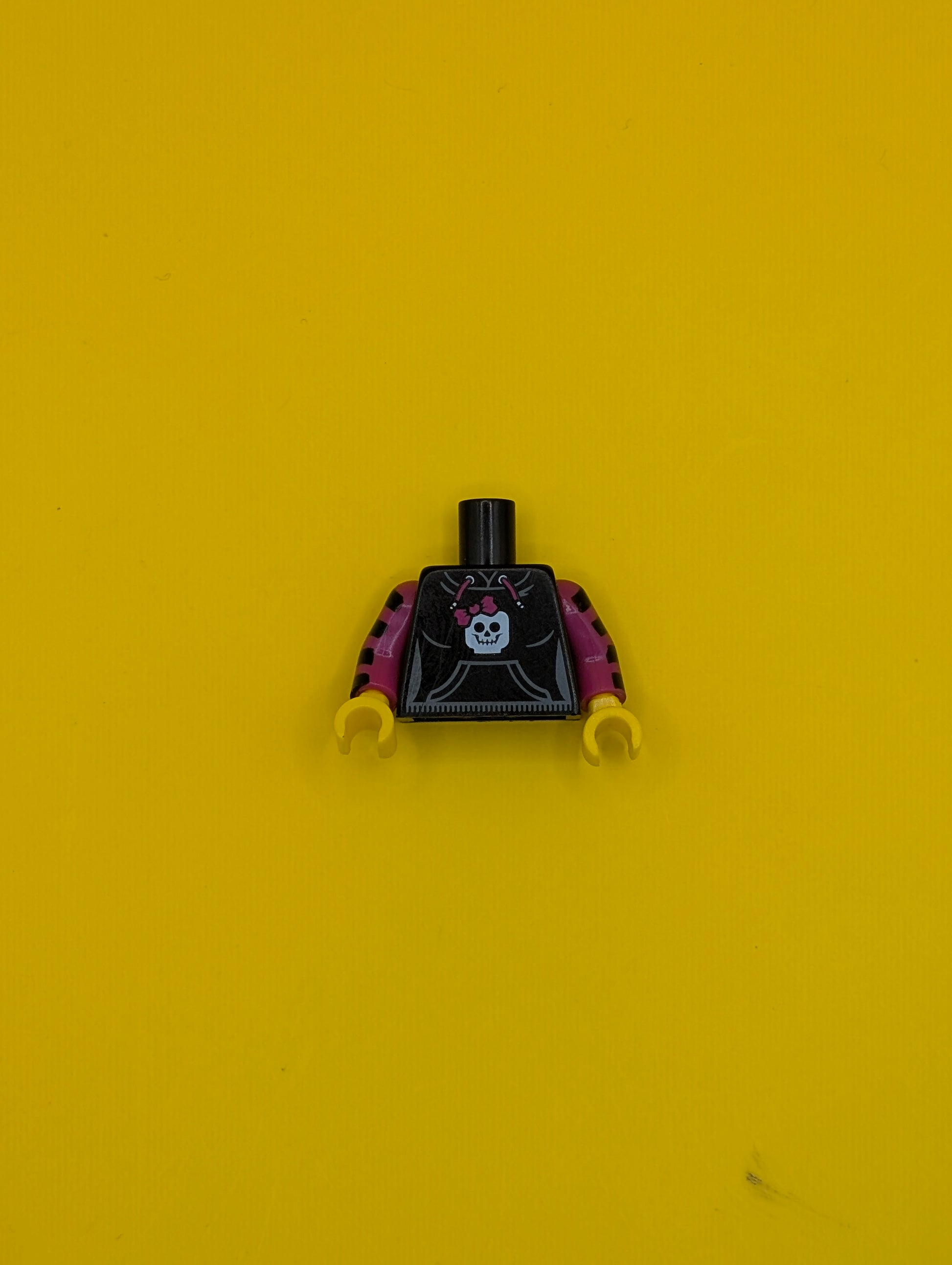 Torso Hooded Sweatshirt with Pocket, Drawstring and Minifigure Skull Pattern / Magenta Arms with Black Stripes / Yellow Hands 973pb1055c01 Lego