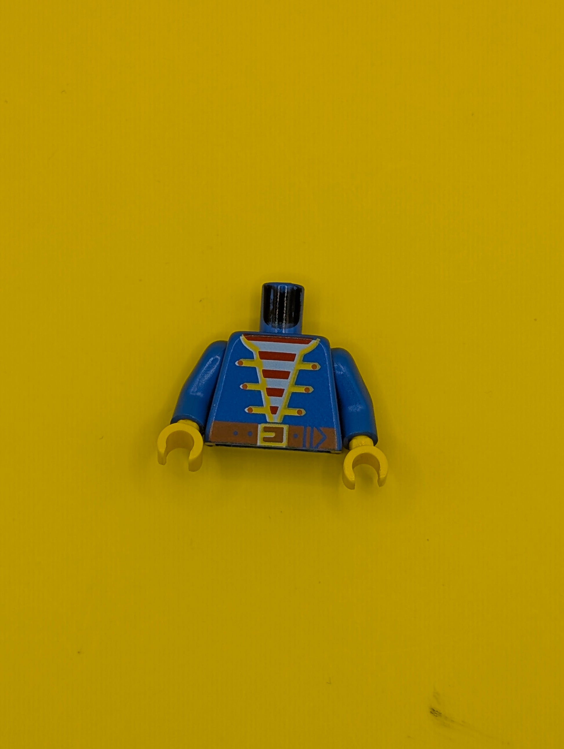 Torso Pirate Jacket Open with Yellow Trim over Shirt with Red and White Horizontal Stripes, Dark Orange Belt with Buckle Pattern / Blue Arms / Yellow Hands 973p34c01 Lego