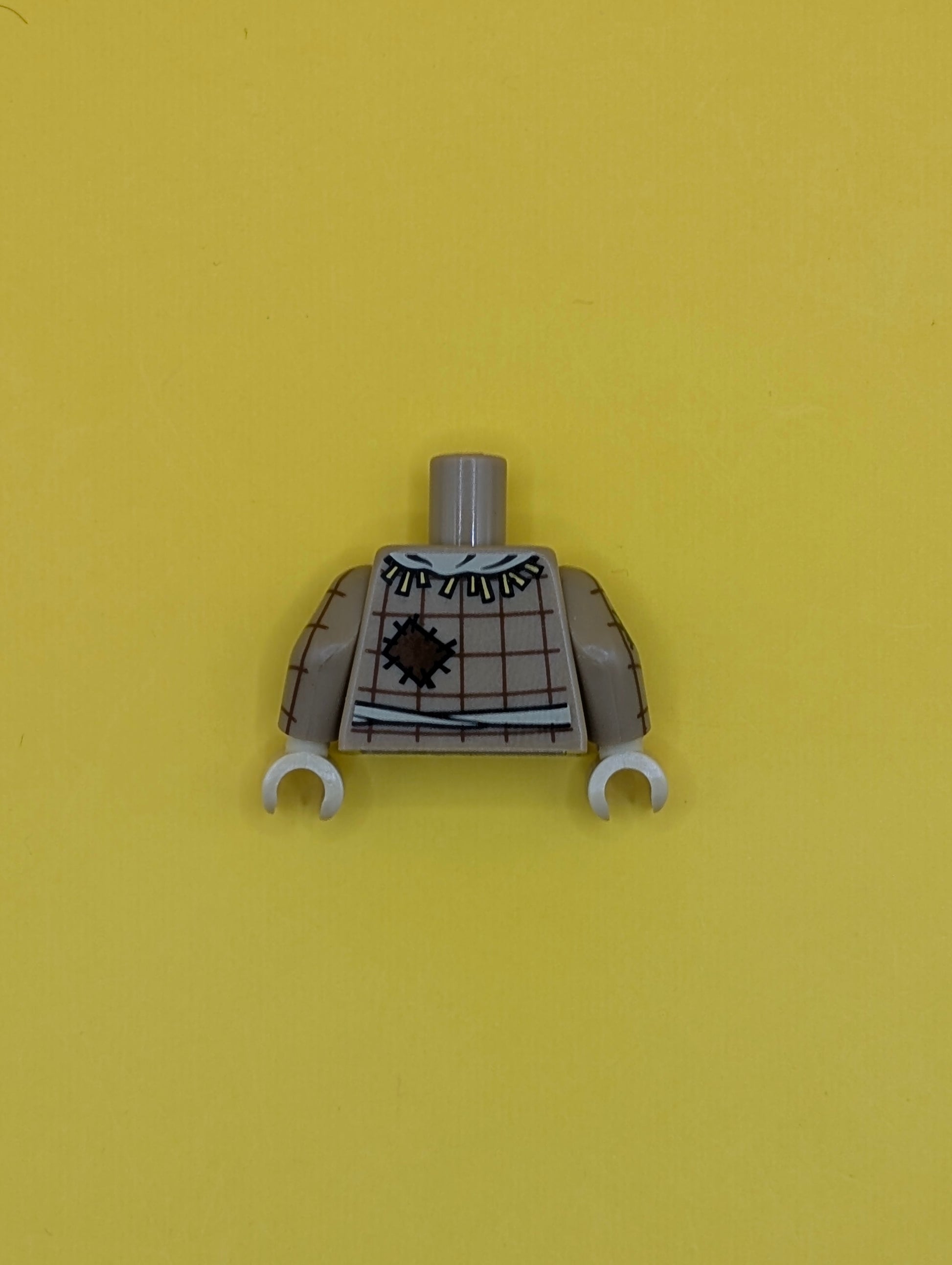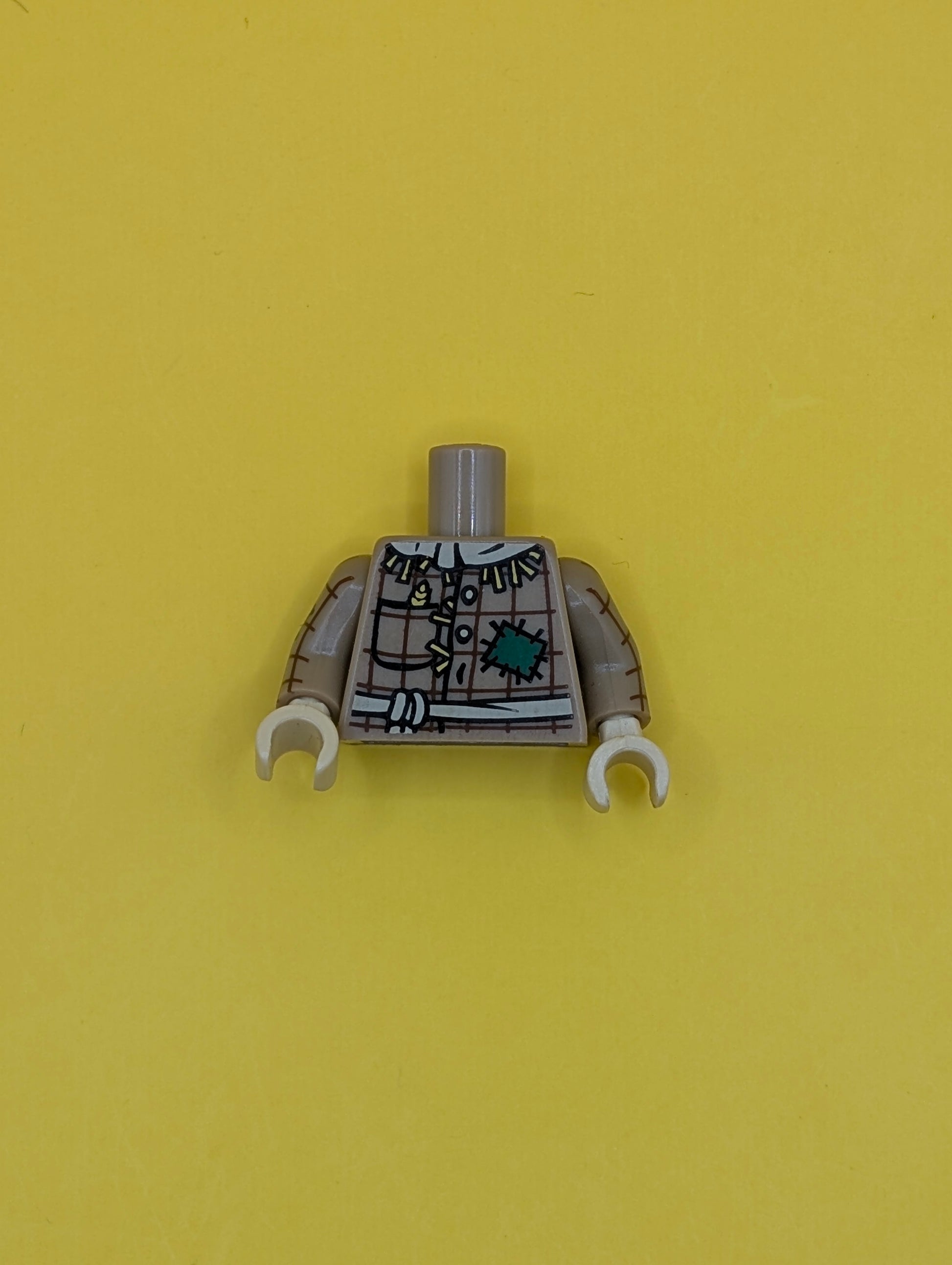Torso Plaid Button Shirt with Straw, Wheat Spike in Pocket, Patches and Rope Belt Pattern / Dark Tan Arms with Plaid Shirt Pattern / Tan Hands 973pb1513c01 Lego