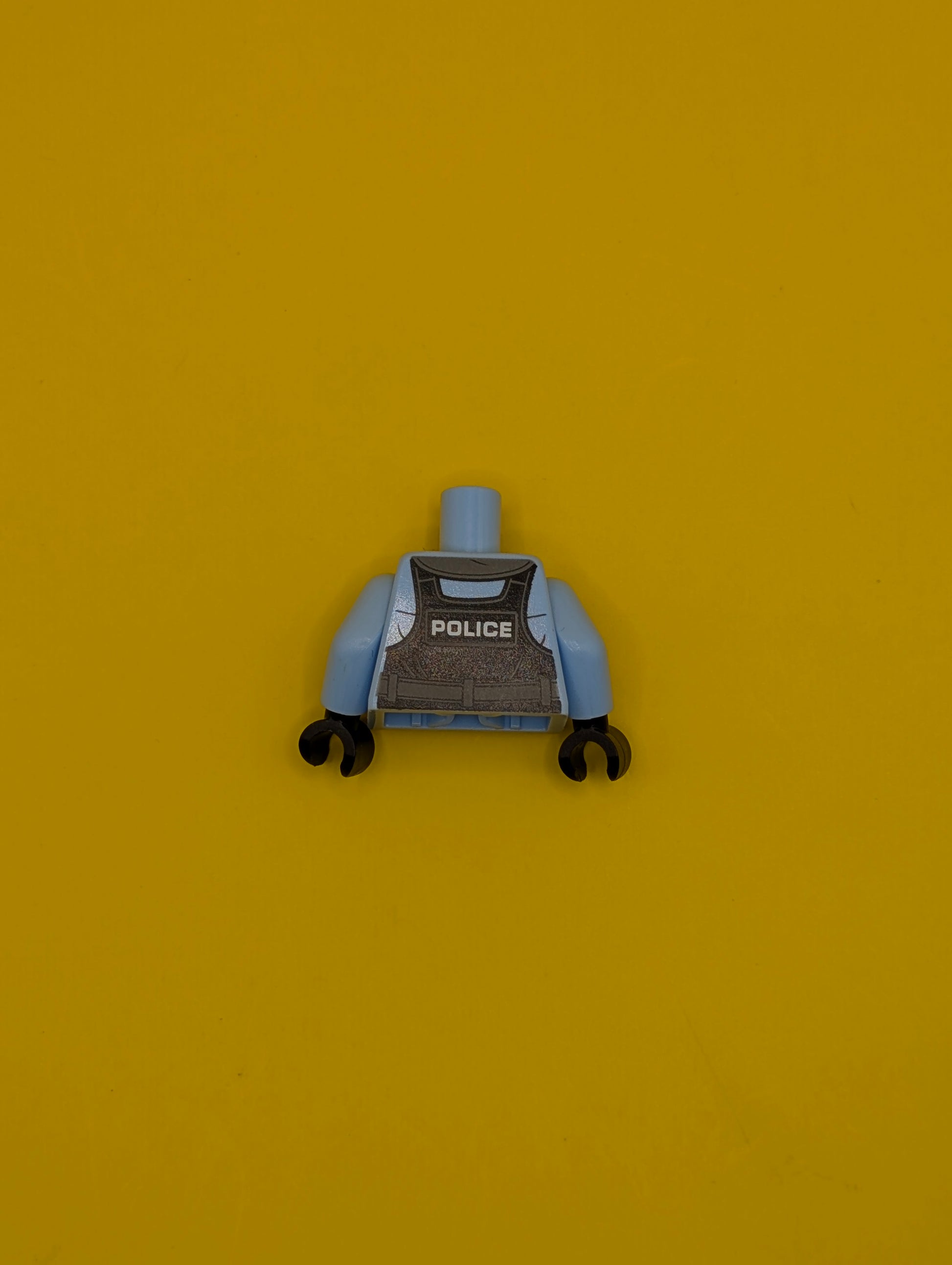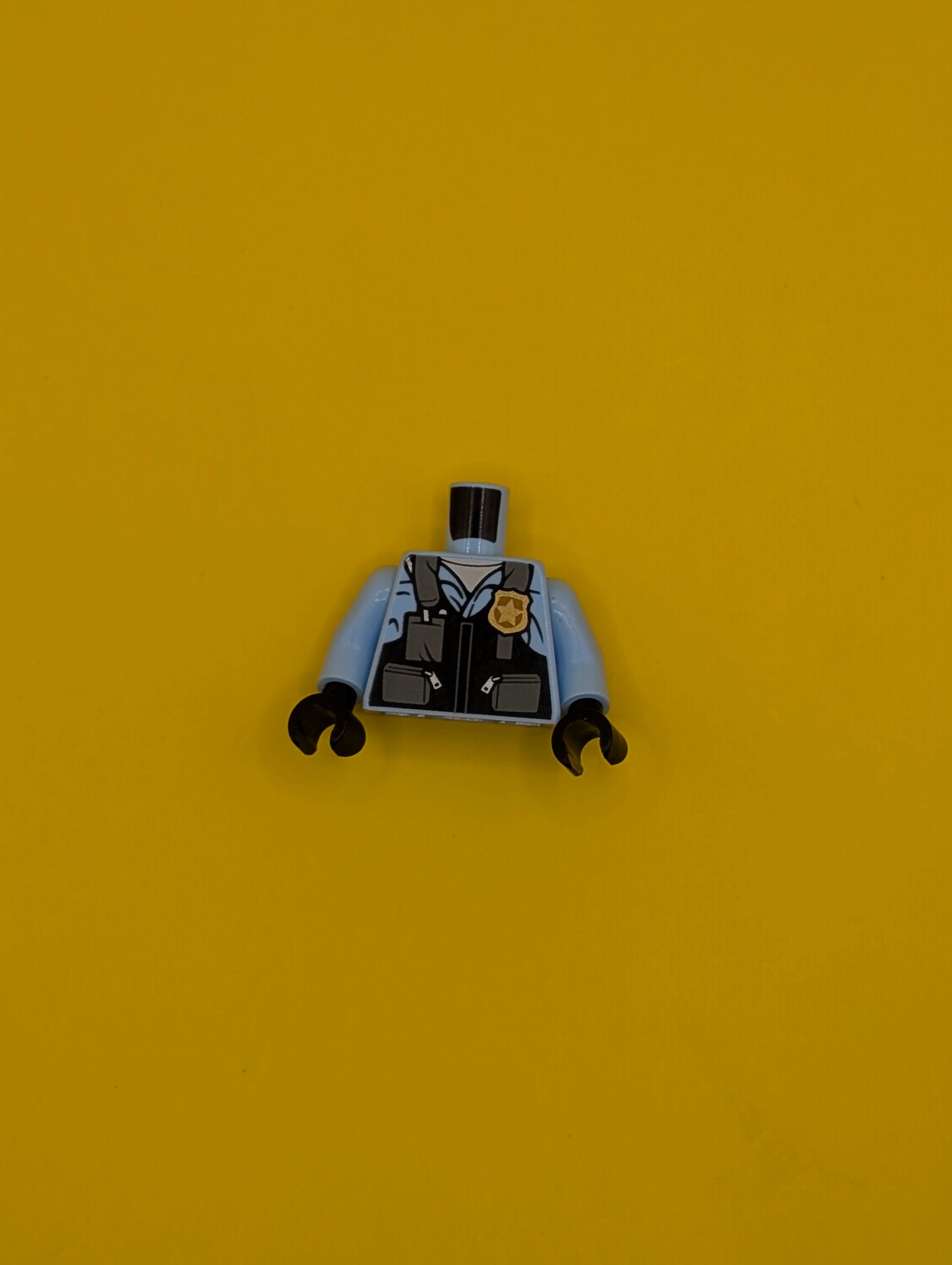 Torso Police Black Pilot Safety Vest with Police Badge and Dark Bluish Gray Pockets Pattern / Bright Light Blue Arms / Black Hands 973pb3376c01 Lego