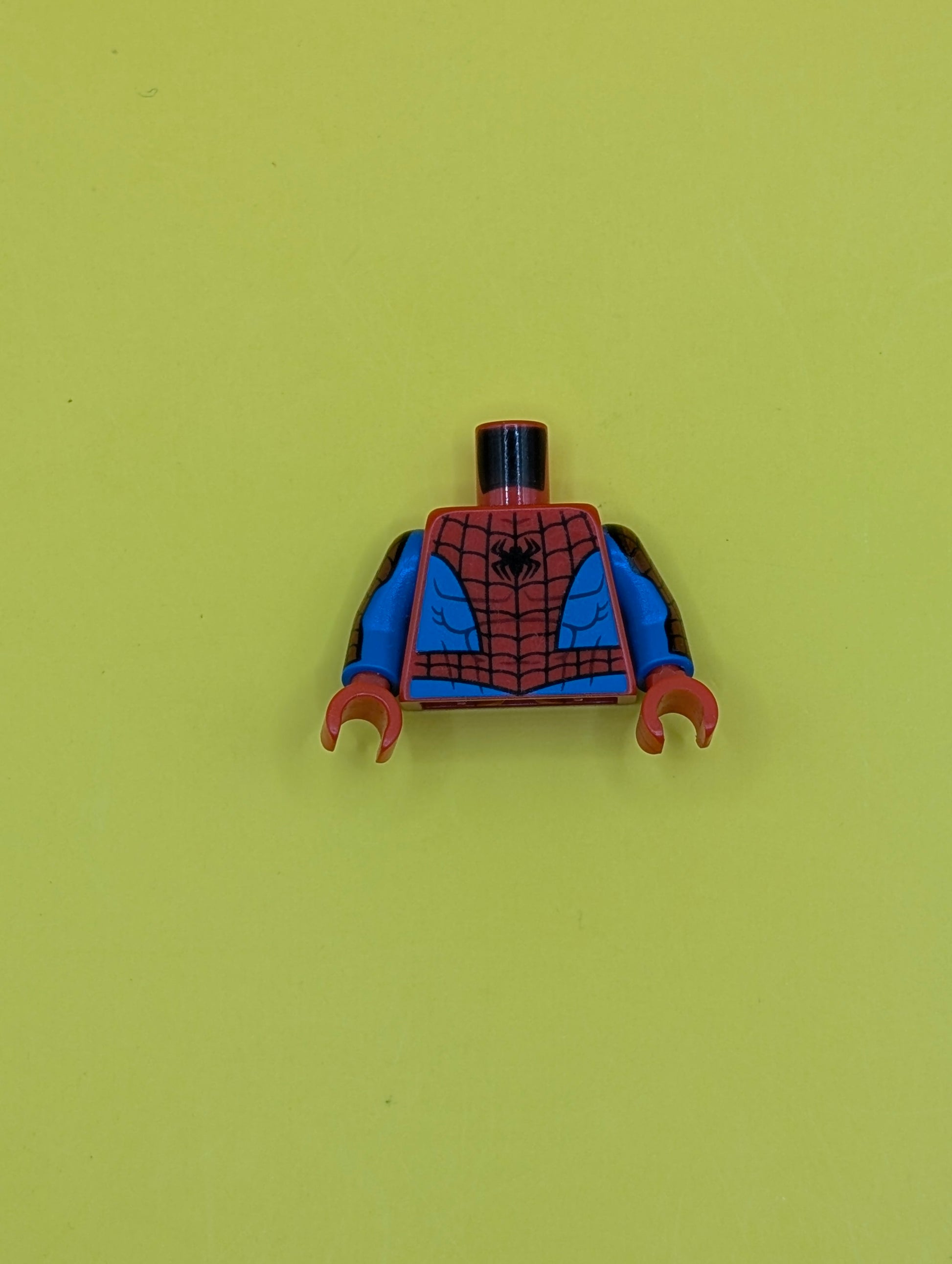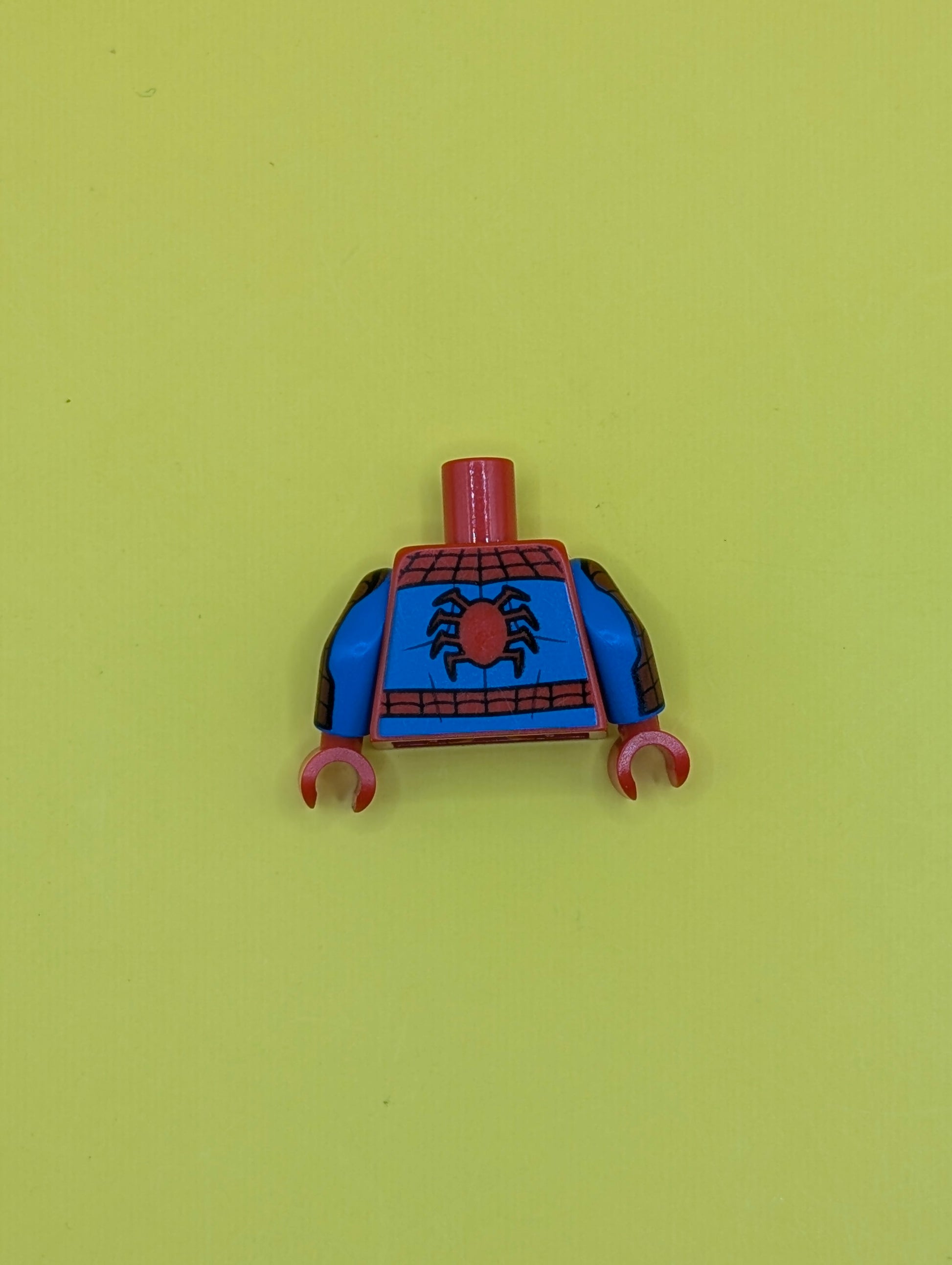Torso Spider-Man Costume 12 Black Spider, Black Webbing, Blue Vest and Belt Pattern / Blue Arms with Red Patch and Black Webbing Pattern / Red Hands 973pb4166c01 Lego