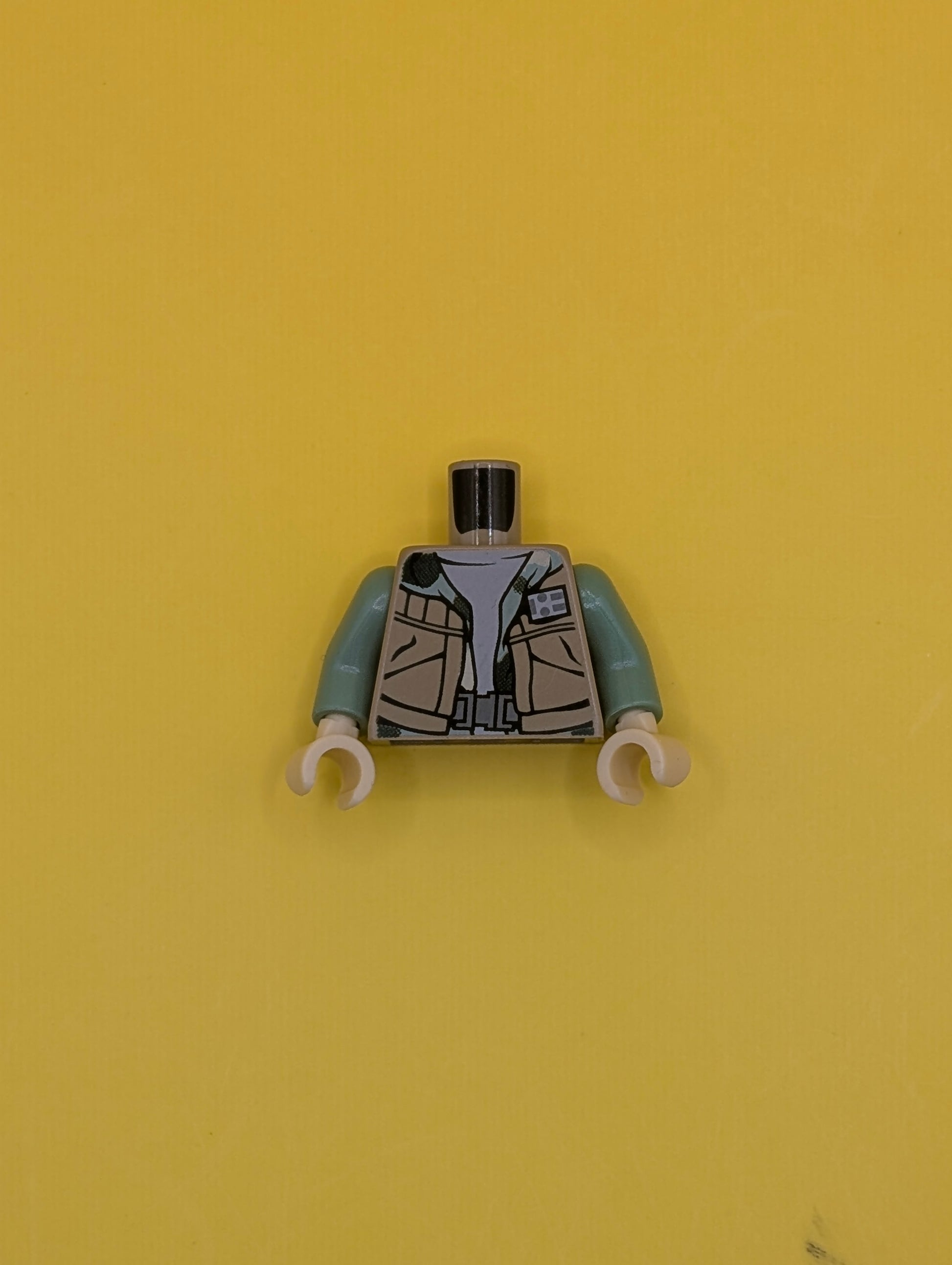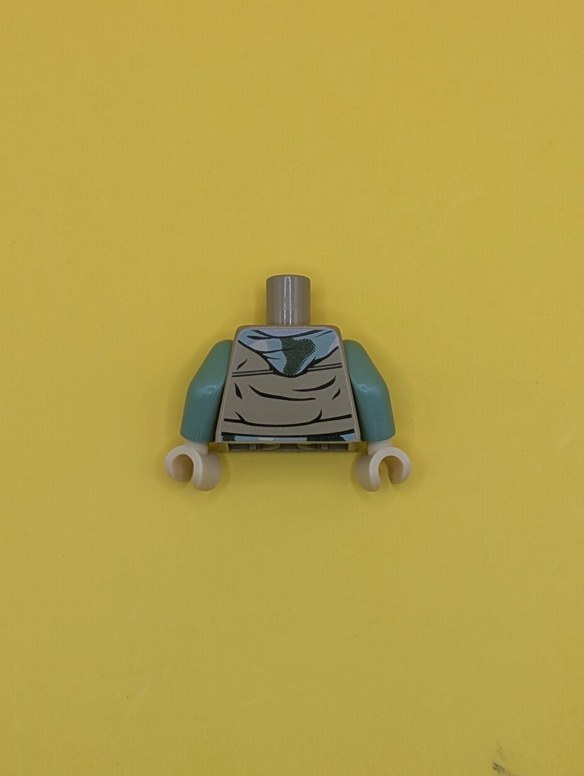 Torso SW Vest Open over Camouflage Hoodie and Light Bluish Gray Shirt, Dark Bluish Gray Belt Buckle Pattern / Sand Green Arms / Tan Hands 973pb1050c01 Lego