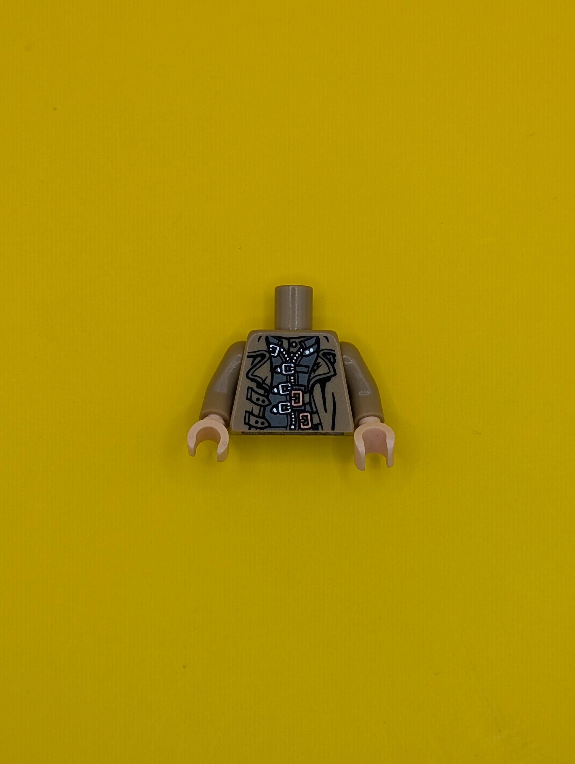 Torso Trench Coat Open over Dark Bluish Gray Jacket with Straps and Zipper, Silver and Copper Buckles Pattern / Dark Tan Arms / Light Nougat Hands 973pb3251c01 Lego